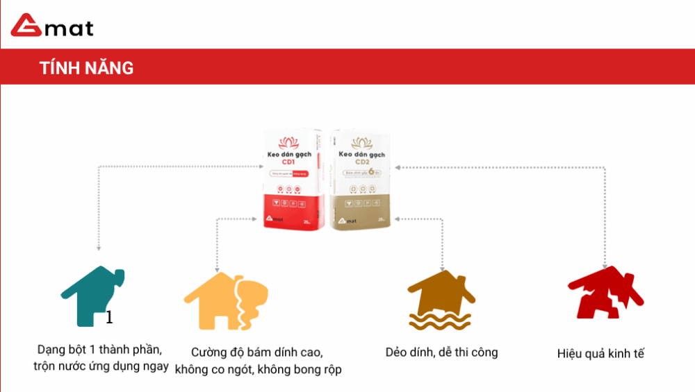Ngành xây dựng luôn chịu áp lực tiến độ. Keo càng dễ thi công, càng ít phải chờ đợi – càng tiết kiệm chi phí đội thi công. Ví dụ AMAT CD1 ghi “Dễ sử dụng, thi công nhanh”.