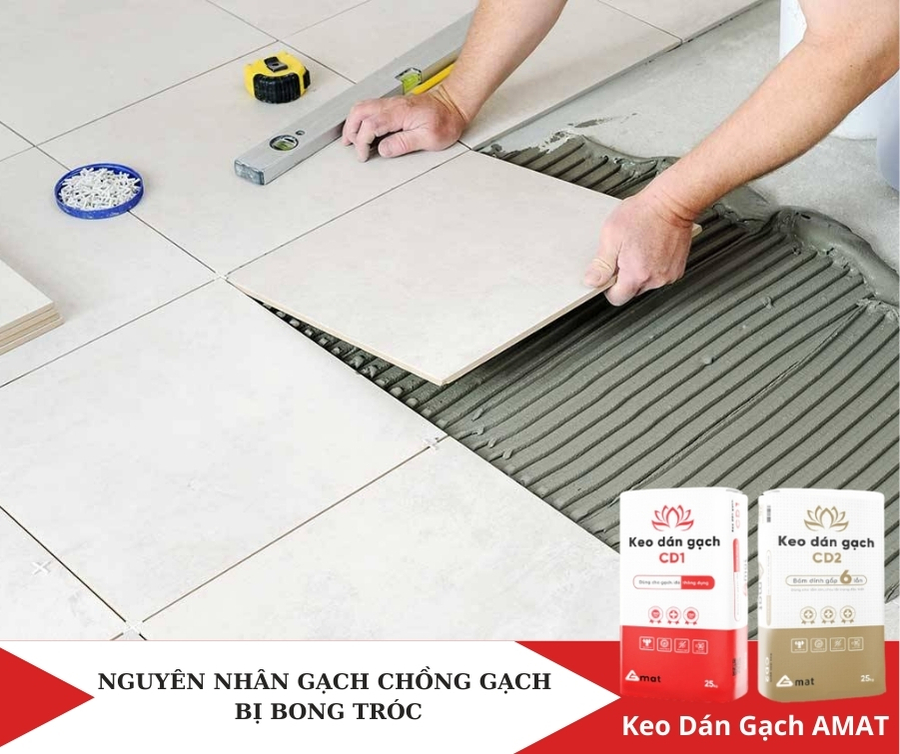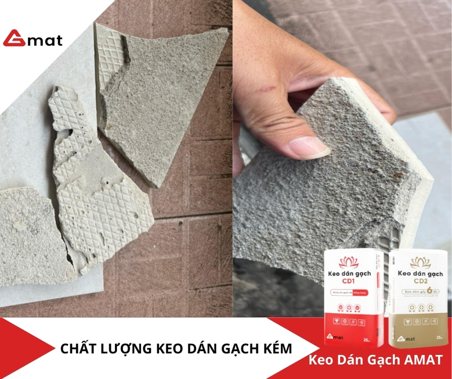 Trong nhiều công trình, thợ thi công vẫn sử dụng xi măng truyền thống để lát gạch chồng gạch. Xi măng có nhược điểm lớn là khả năng bám dính kém trên bề mặt nhẵn bóng của gạch cũ, dễ co ngót khi khô và thiếu tính đàn hồi, dẫn đến tình trạng bong tróc sau một thời gian ngắn. Đây chính là lý do các chuyên gia vật liệu xây dựng luôn khuyến nghị sử dụng keo dán gạch chuyên dụng thay cho xi măng trong hạng mục chồng gạch. Keo dán gạch AMAT với thành phần polymer cải tiến, độ bám dính vượt trội và khả năng chống trượt cao, giúp đảm bảo lớp gạch mới liên kết chắc chắn với nền cũ, hạn chế tối đa nguy cơ bong tróc.