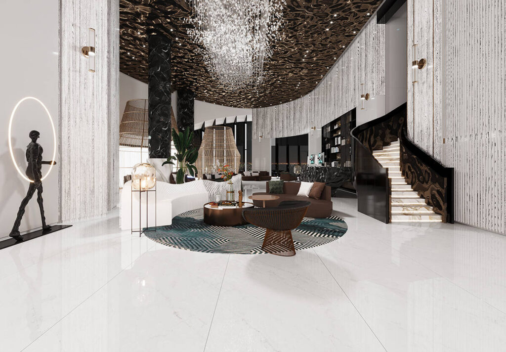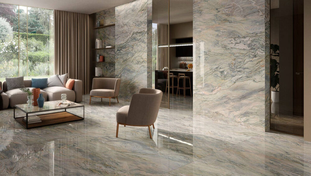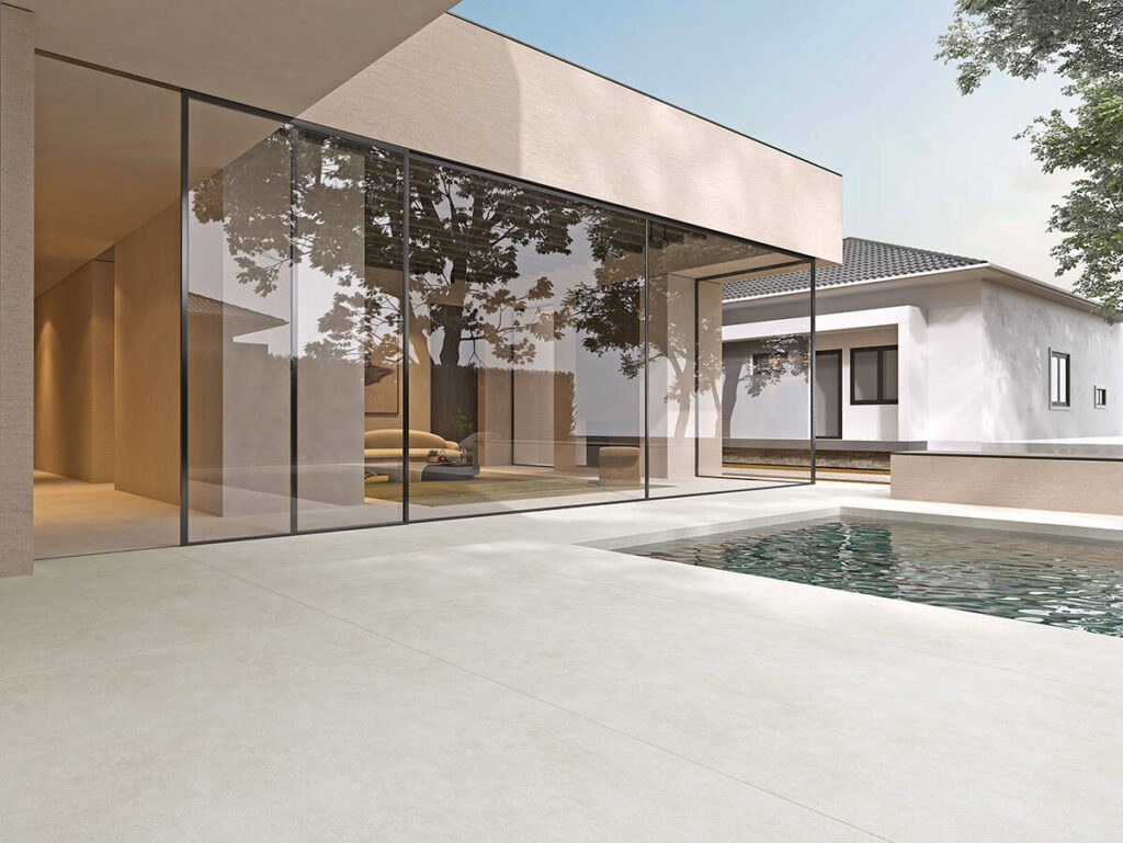 Vật liệu ốp lát mới được sử dụng không chỉ cho sàn và tường mà còn mở rộng sang mặt bàn bếp, ốp trang trí, mặt tiền và không gian ngoài trời. Gạch slab với độ bền cao thích hợp cho quán cà phê, khách sạn hoặc các công trình cần tính nhận diện thương hiệu.